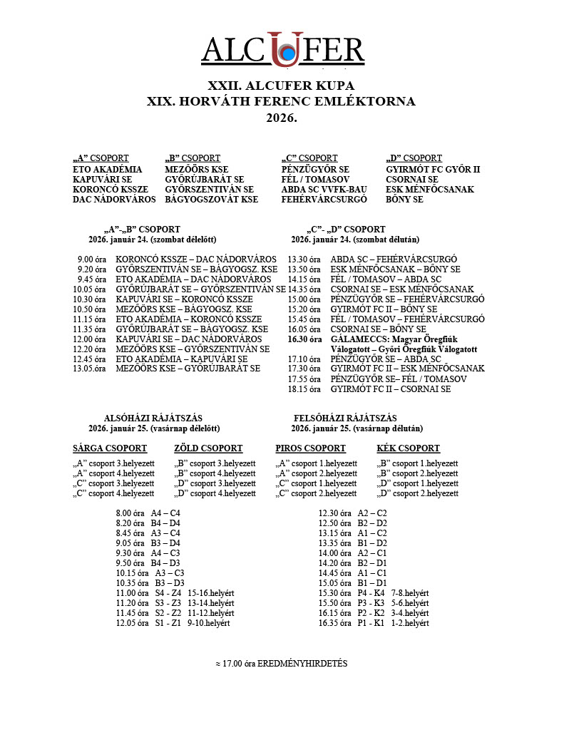 A torna programja az alábbiak szerint alakul: